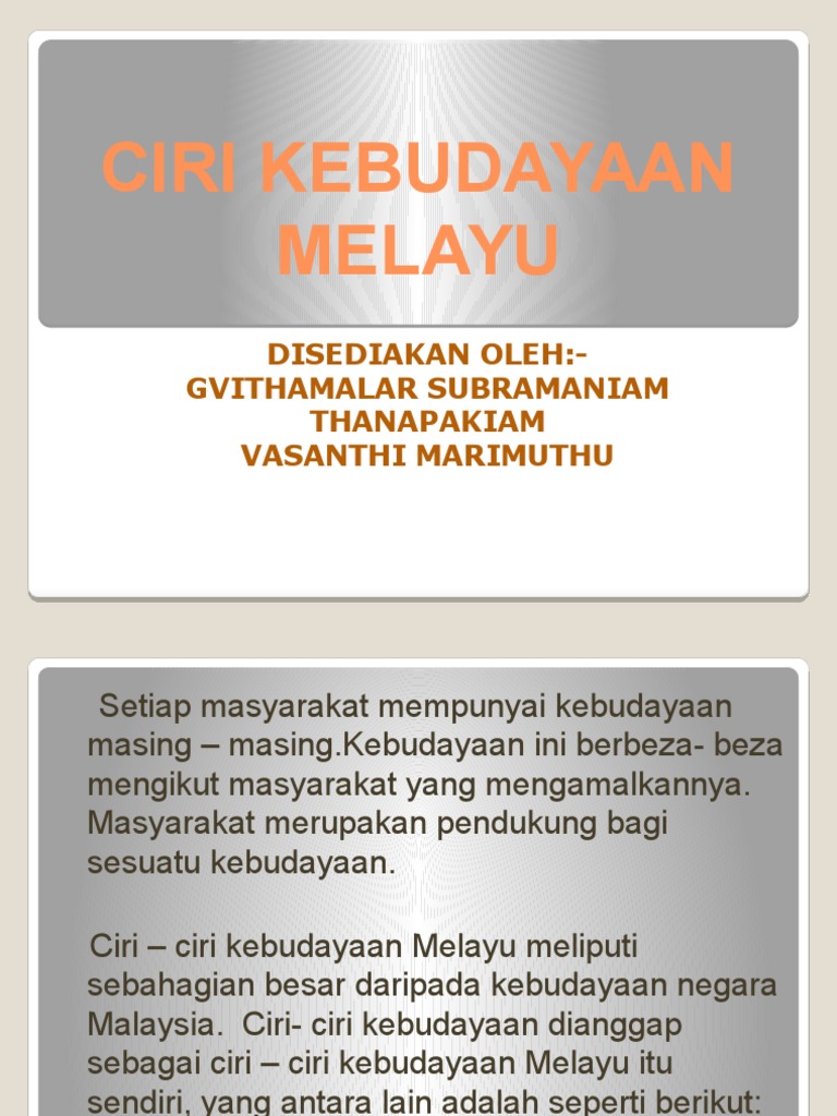Ciri-ciri Budaya Masyarakat Melayu Di Malaysia
